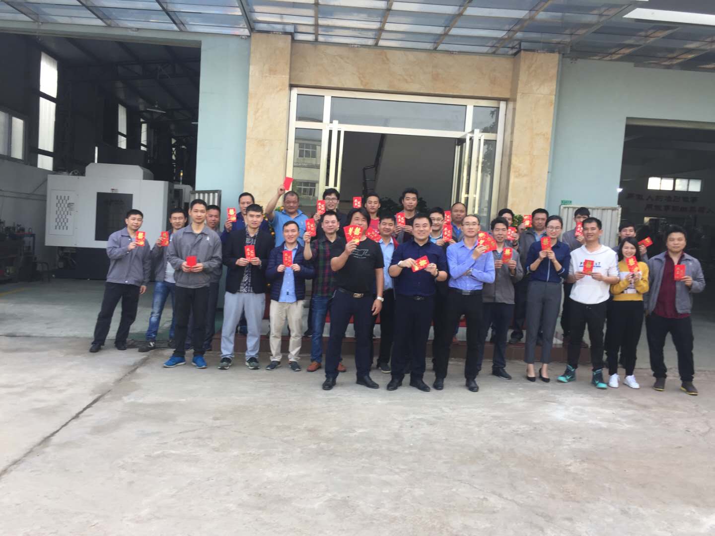 昶豐機械科技有限公司總經理舒飛龍給員工現場派發開年紅包